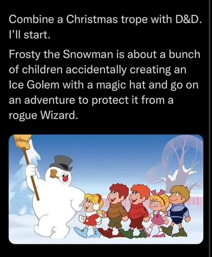 𝔗𝚎𝚑 𝔅𝚊𝚖𝚜𝚔𝚒@lemmy.worldEnglish · 17 days agoCombine a X-mas trope with TTRPGi.pinimg.comimagemessage-square10linkfedilinkarrow-up1245arrow-down14
