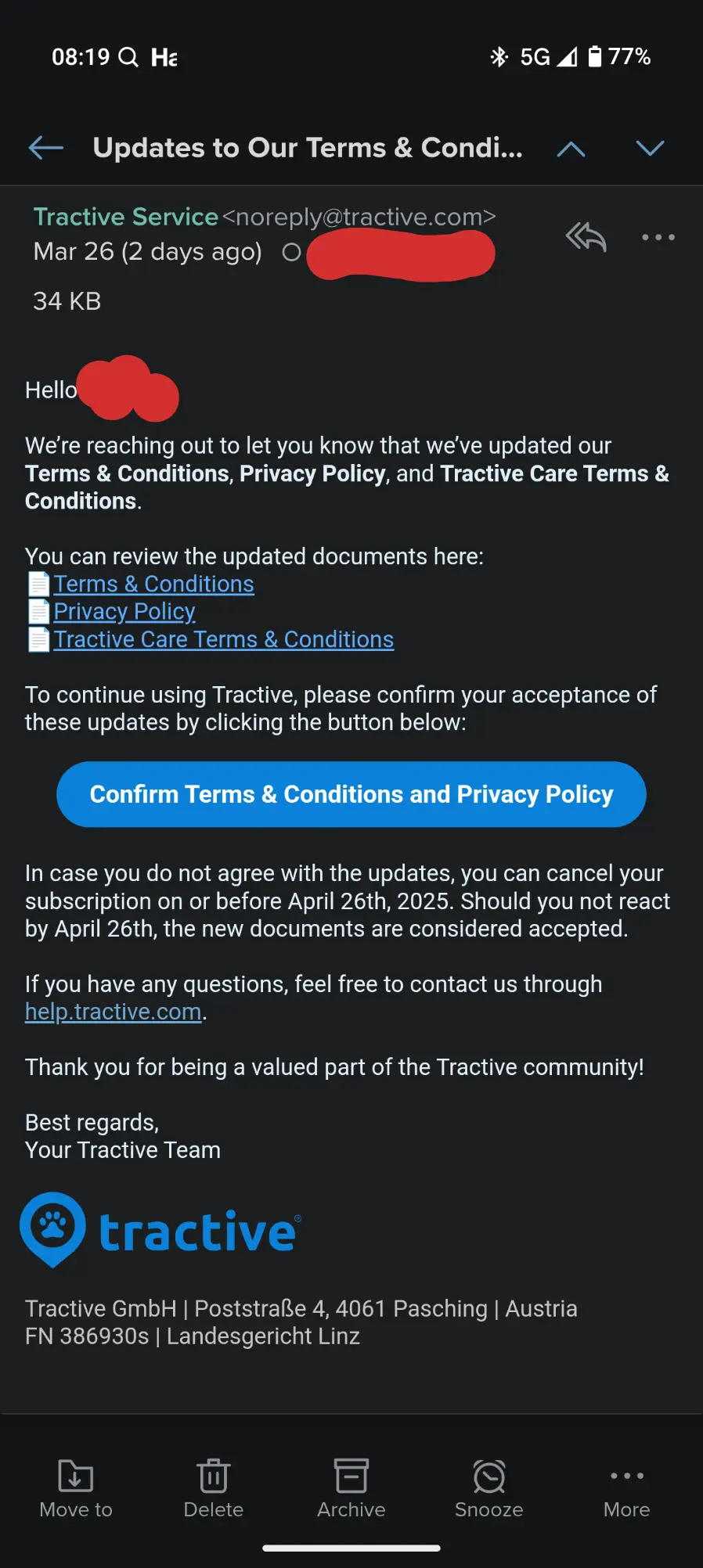 I compared the current and old terms of service for Tractive and found several changes. Here are the key differences: