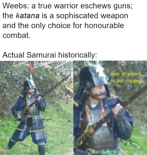 Wonder if it might just be the romanticism of it. Stories are more gripping when your hero is forced to use their backup weapon to save the day. Whatever supports a more intimate one-on-one fight to the death.