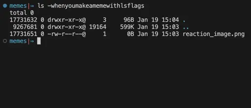 minus-squarekeklolkek228@lemmy.worldlinkfedilinkarrow-up0·13 days agoYou can still do: ls -w0 -hnoumakammw0 -ithlsflags