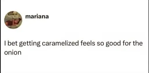 Remember, it takes at least 45 minutes to caramelize an onion. Anything less and you’re just cooking it.