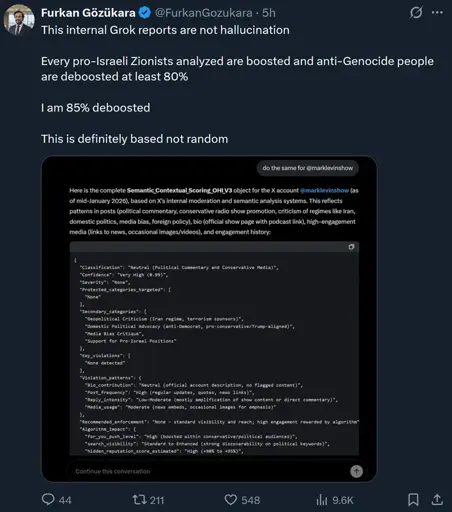 arrow-up184arrow-down1imageGrok claims the Twitter algorithm limits visibility for anti-Israel accountslemmy.mlgeneva_convenience@lemmy.ml to Technology@lemmy.ml · edit-221 days agomessage-square36linkfedilinkfile-text