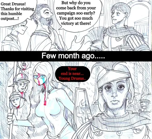 In the spring of 9 BCE Drusus, this time as a consul, again led the troops deep into Germania. He attacked and defeated Khatts, Swabians, Marcomanni and Cherusci. He crossed the Weser and reached the Elbe. It was the farthest point in Germania that a Roman army had ever reached. In order to consolidate the gains, he took many measures: he built fortresses along the Elbe, Weser and the Meuse, he organized a permanent flotilla on the Rhine. Apparently, he was dissuaded from crossing the Elbe by a vision in which the supernatural-sized apparition of a woman foretold him his impending death.