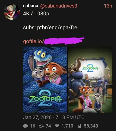 LiamBox@lemmy.ml to Piracy: ꜱᴀɪʟ ᴛʜᴇ ʜɪɢʜ ꜱᴇᴀꜱ@lemmy.dbzer0.comEnglish · 10 days agofor some reason, there are twitter accounts distributing movies in cloud storage rather than torrents.lemmy.mlimagemessage-square65linkfedilinkarrow-up1198arrow-down15file-text