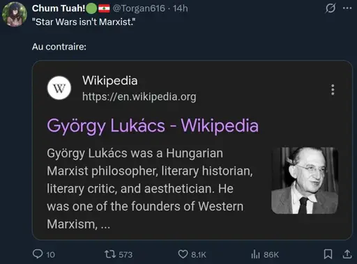 minus-squareherseycokguzelolacak@lemmy.mllinkfedilinkarrow-up0·7 days agoDidn’t George Lucas say that the original trilogy is an analogy for the Vietnam War, and the Rebel Alliance are the Vietcong?