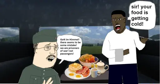When Axis POWs arrived in Canada in droves the Canadian Government simply bought each and every one of them a railway ticket to the town which had their POW camp and put them on ordinary passenger trains. Because they had ordinary tickets on ordinary trains they were given meals in the dining cars same as everybody else. It’s reported that some POWs protested the lavish meals insisting they were prisoners and were not supposed to be treated so well