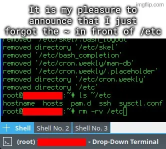 I went on to rm -rv ~/etc, but I quickly typed rm -rv /etc instead, and hit enter, while using a root account.