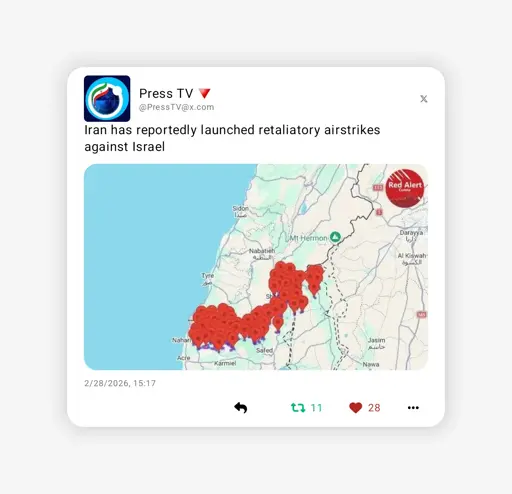 arrow-up1248arrow-down1imageIran has reportedly launched retaliatory strikes against Israellemmy.mlA🔻atar of 🔻engeance@lemmy.ml to World News@lemmy.mlEnglish · 19 days agomessage-square199linkfedilinkfile-text