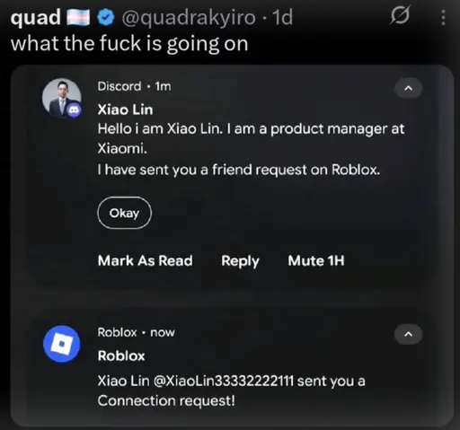“Hello, comrade Xiao Lin from Xiaomi! I saw your [friend] request on Roblox, but I don’t think it’s satisfying. Therefore, I’ve sent you a counter-proposal on Club Penguin. Please take a look as soon as you are able to. Your avatar is as handsome as comrade Xi Jinping. I look forward to our collaboration.”